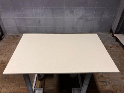 Volwaardig keukenblad, recht afgewerkt langs de zijdes.