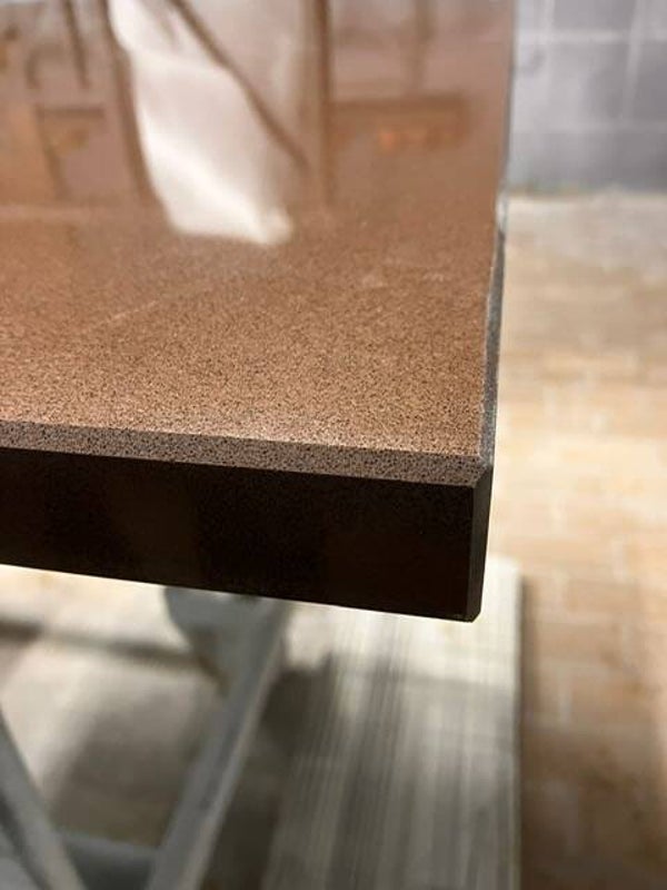 Volwaardig keukenblad, recht afgewerkt langs de zijdes.