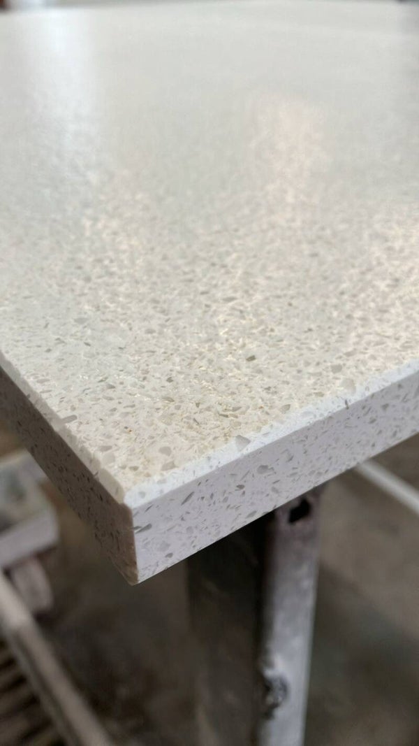 Volwaardig keukenblad, recht afgewerkt langs de zijdes.