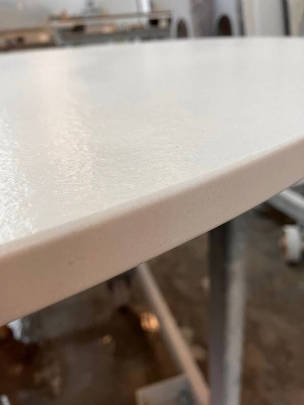 Volwaardig keukenblad, recht afgewerkt langs de zijdes.